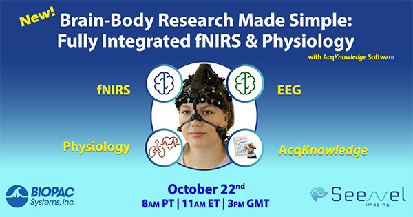Alaturati-va BIOPAC impreuna cu creatorii si cercetatorii din spatele MedelOpt+ pentru a explora modul in care acest sistem avansat fNIRS si EEG — gestionat acum fara probleme prin software-ul AcqKnowledge — va poate transforma cercetarea. De la fNIRS si EEG la fiziologie sistemica, stimulare, urmarirea ochilor si observatia comportamentala, totul este controlat printr-o singura interfata unificata.